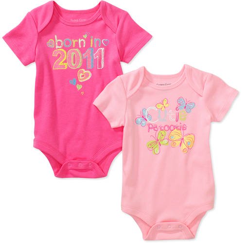 Faded Glory Newborn Girls Assorted Screen Print Creepers 2 Pack