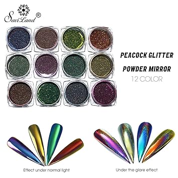 Amazon Com 12pcs Peacock Holographic Powder Saviland Nail Glitter