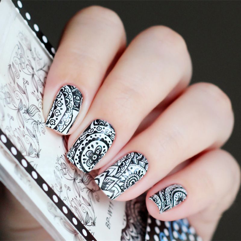 Born Pretty Black White Flower Nail Art Water Decals Transfer
