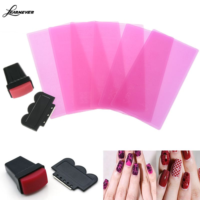 Learnever Nail Art Stamp Stencil Stamping Template Plate Set Tool