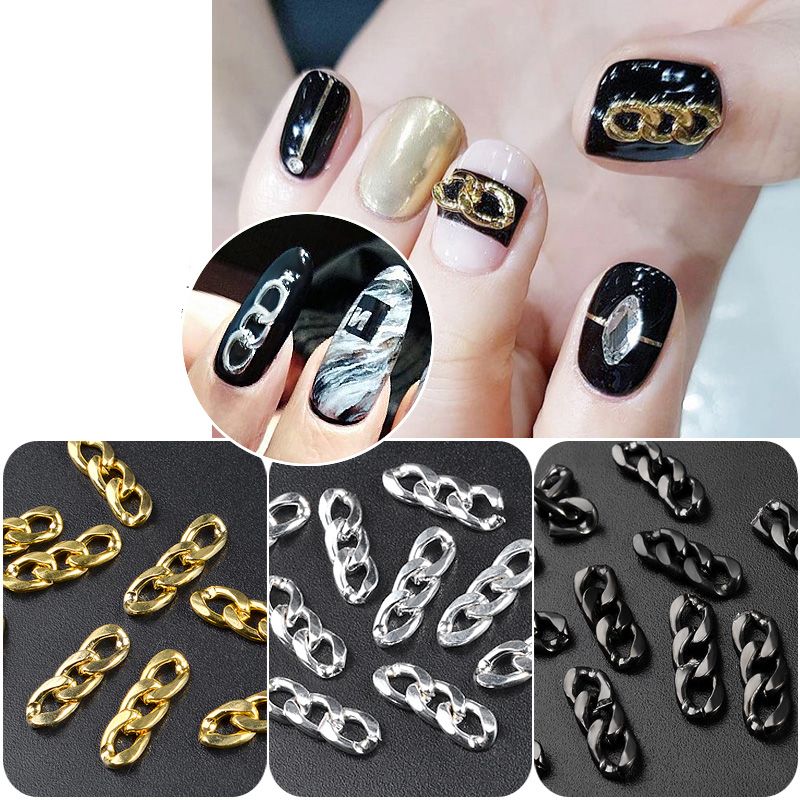 1 Pack Gold Silver Black Metal Zipper Design Nail Chains Punk Rivets Studs 3d Diy Fashion Accessories Hollow Nail Art Decoration