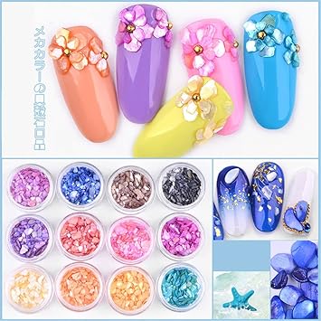 Amazon Com 12 Pots Shells Abalone Flakes Natural Pearl Light Nail