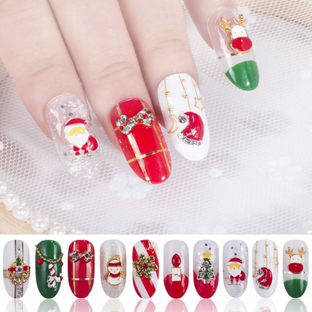 Xmas Nail Art Decorations Nail Studs Christmas Tree Snowman Alloy 3d