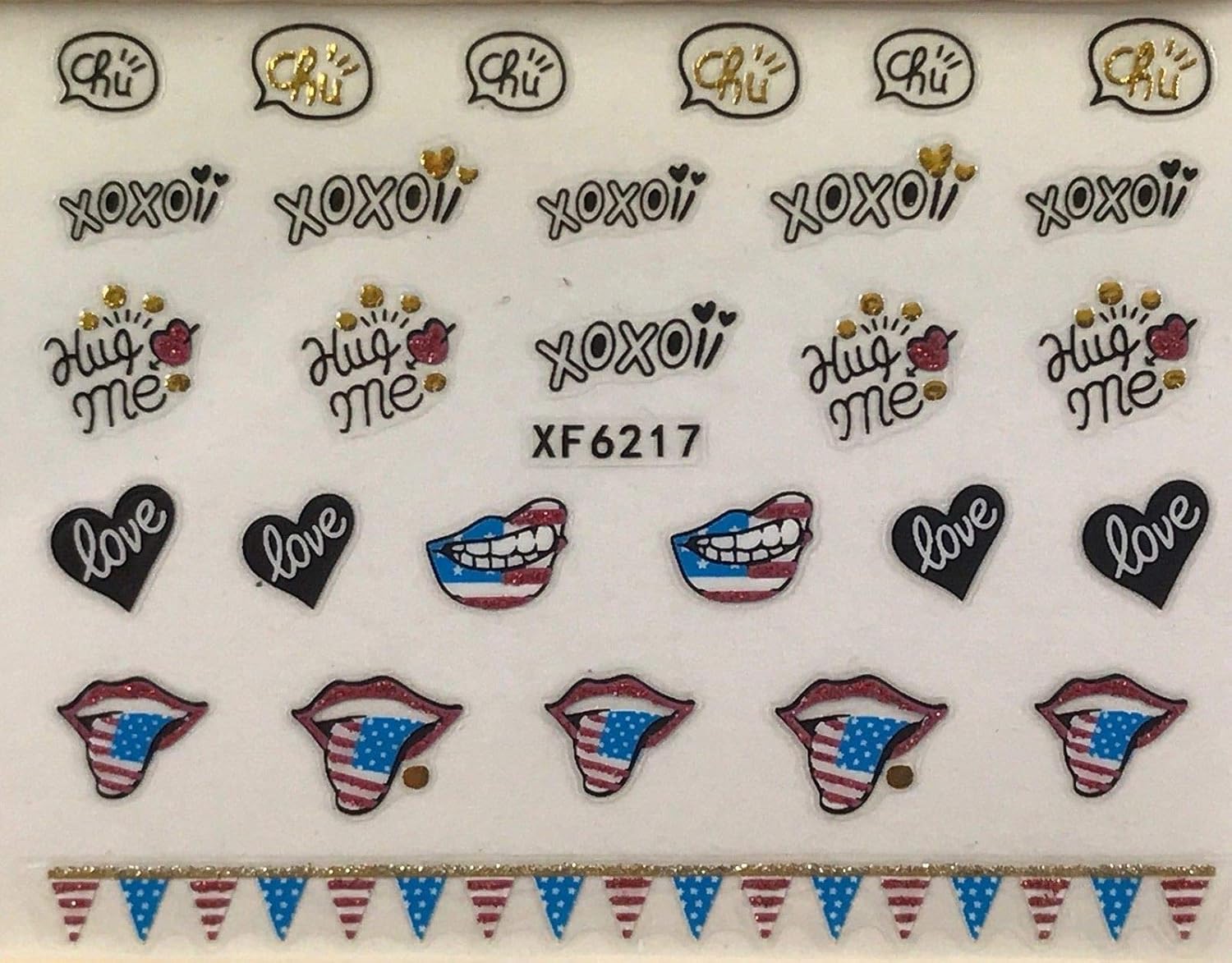 Amazon Com Nail Art 3d Decal Stickers Usa American Flag Banner Xoxo