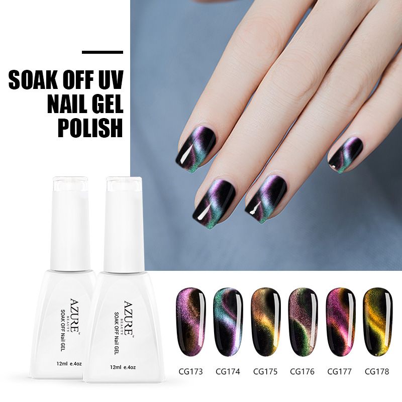 Azure Beauty 6pcs Newest Chameleon Magnetic Nail Gel Polish 12ml For Nail Art Design Double Color 3d Cat Eye Effect Shiny Color Nail Gel