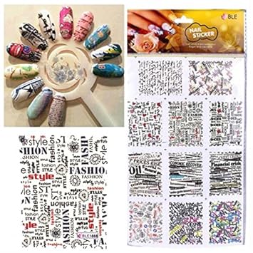 12 Designs Newspaper Nail Stickers Beauty Wraps Water Transfer Art