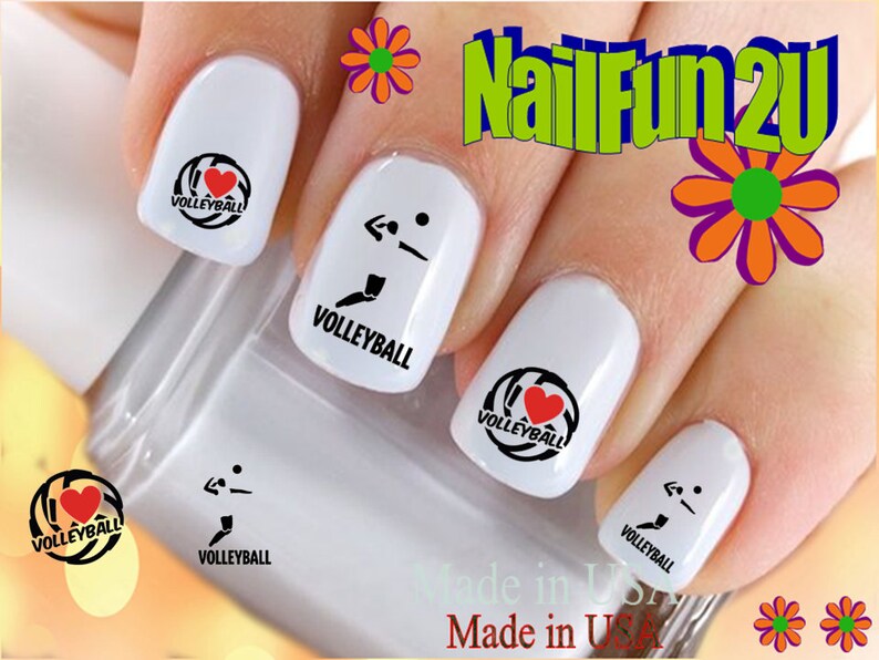 Sports Nail Decals Volleyball 1 I Love Red Nail Etsy